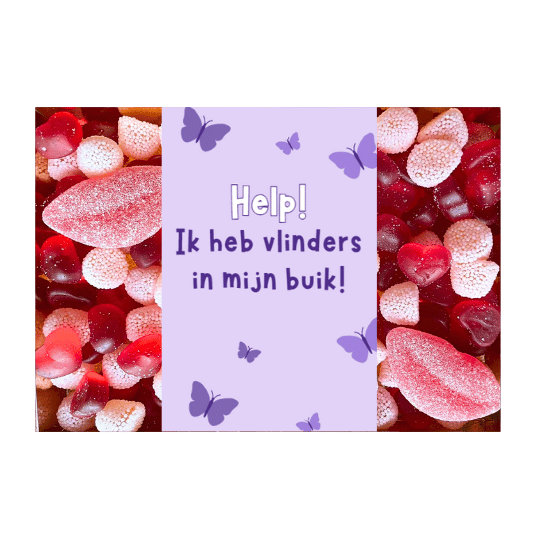 Een geliefde verrassen? Stuur het snoep cadeaupakket Help! Ik heb vlinders in mijn buik