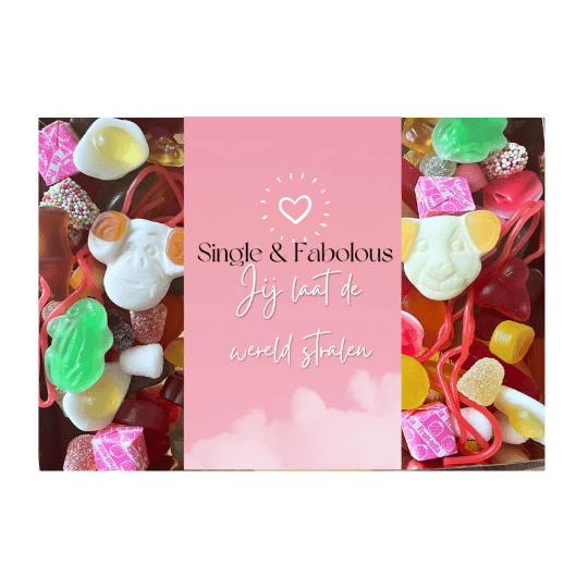 Cadeaupakket Single & Fabolous. Jij laat de wereld stralen. vol lekkers: